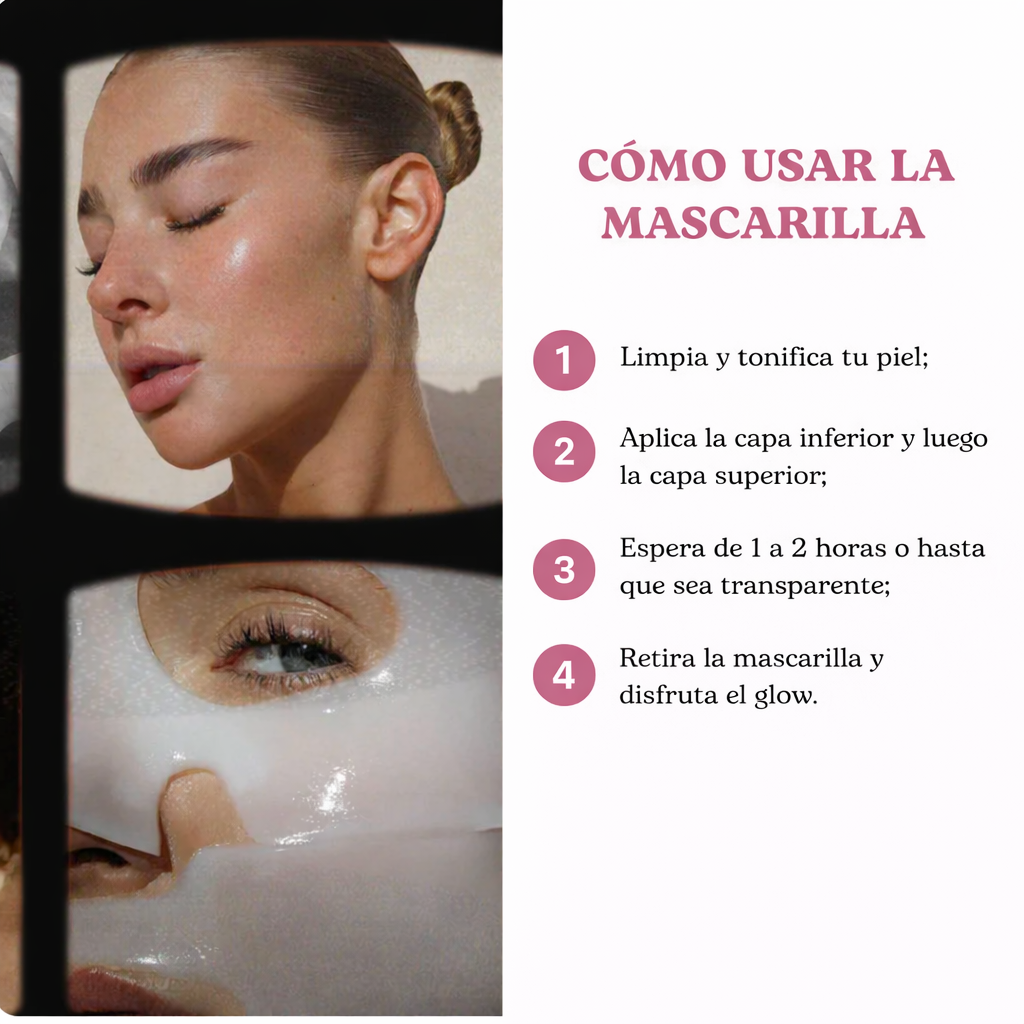 Antes y después con nuestra máscara de colágeno — resultados que se notan en textura, hidratación y luminosidad.